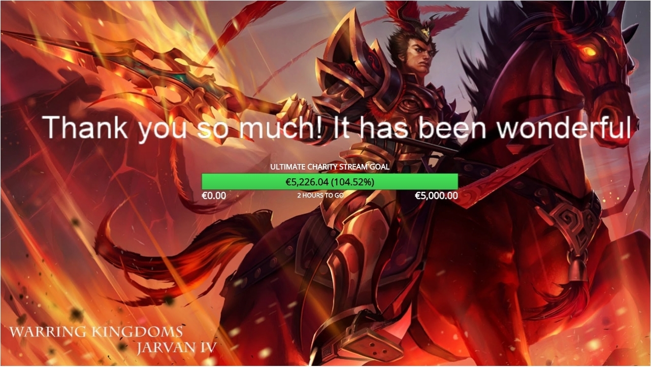 I'm pleased to announce that after a long 24 hours of streaming we as a community have raised over €5000,- in donations for the Prevent Cancer Foundation!.